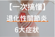 據統計,全台約有350萬人有退化性關節炎的問題,而退化性關節炎的黃金治療期間,是在病徵出現後的6個月內,因此當發生關節腫脹、疼痛、僵硬、異聲等症狀時,一定要特別注意是否是退化性關節炎初期症狀。