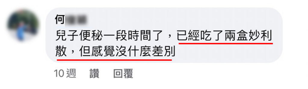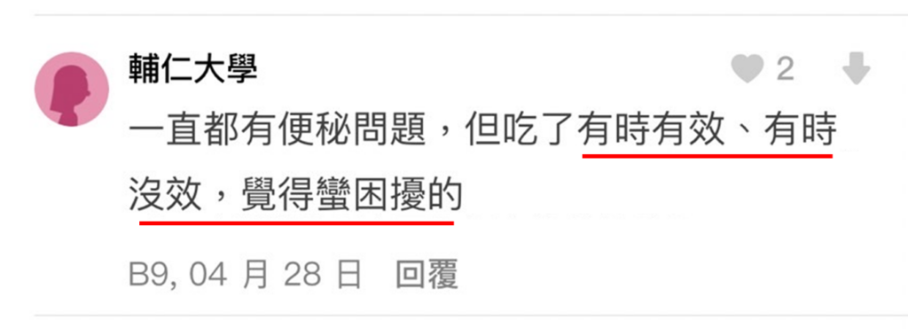 ⭐ 多數網友在實際食用過後的評價,都認為妙利散對於便祕的幫助效果不大、甚至無感